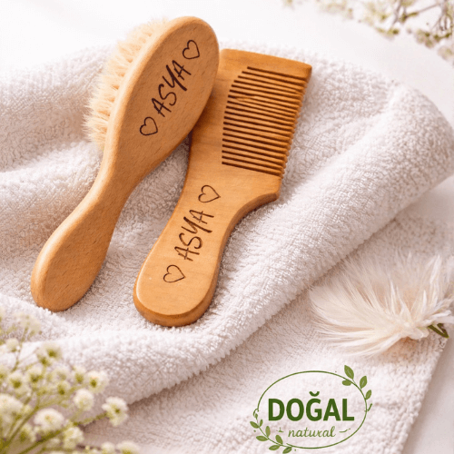 - Bebek Fırçamız Doğal Bambu Tarak ve %100 pamuk özel ham bez kese ile set halinde gönderilecektir.