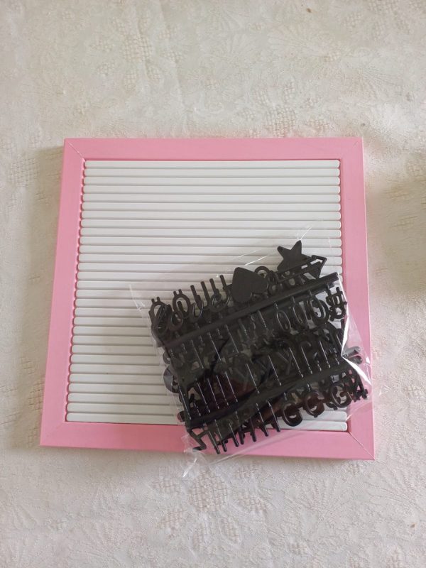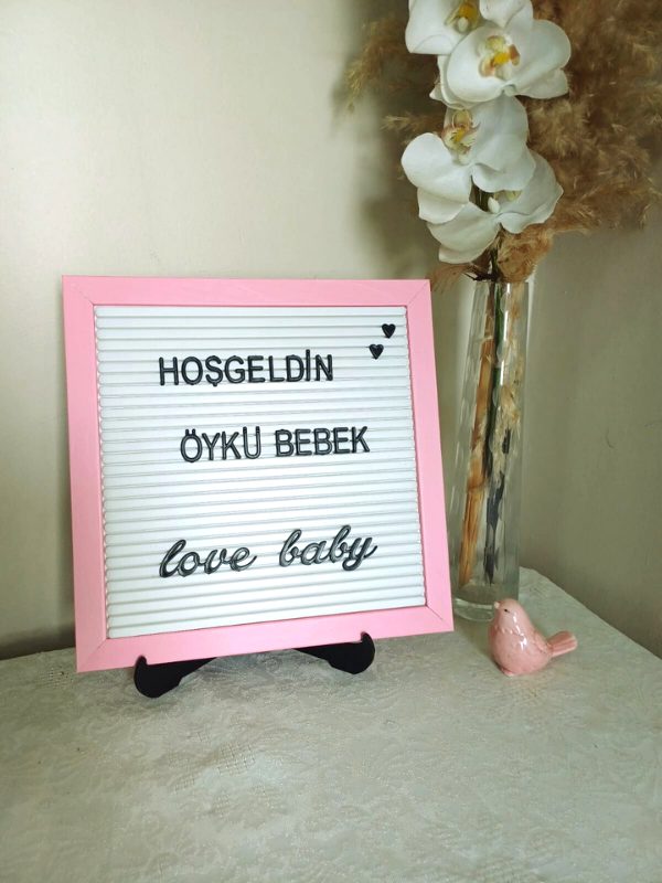 - Pembe çerçeve Beyaz zemin ve SİYAH RENK Türkçe karakterli (noktalı harfler) harf seti bulunmaktadır.