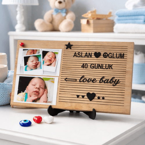 Resimlikli Rustik Ahşap Mesaj Panosu Yazı Tahtası Ahşap Stantlı Siyah Harf Setli